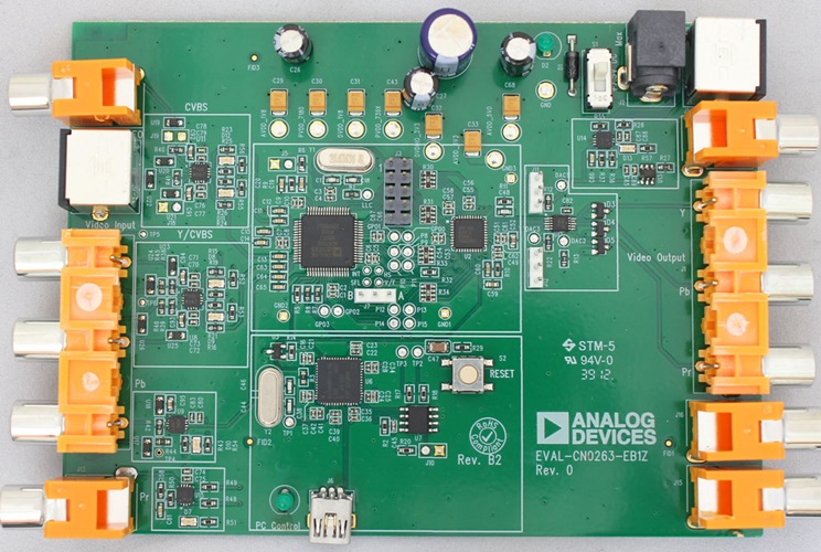 该电路使用 EVAL-CN0263-EB1Z 电路板,其中包含要评估的电路,如本笔记所述。电路板还包括ADV7391 视频编码器,可用于重建输入视频信号。若需有关输出电路的介绍,请参考CN-0264 电路笔记。Cypress USB微控制器用于配置EVAL-CN0263-EB1Z 板并向/从该板加载软件。
