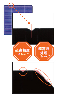 通过配备一种算法,即抽出电池的轮廓,一边跟踪一边检测与周边不同的位置,可实现超高精度的缺损裂纹检测。