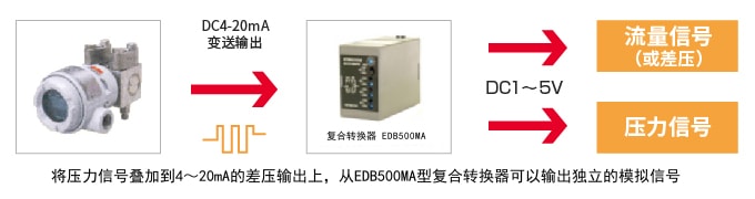与EDB500MA型复合转换器组合 , 可以传输差压、压力、流量、温度信号,独立的进行模拟输出。